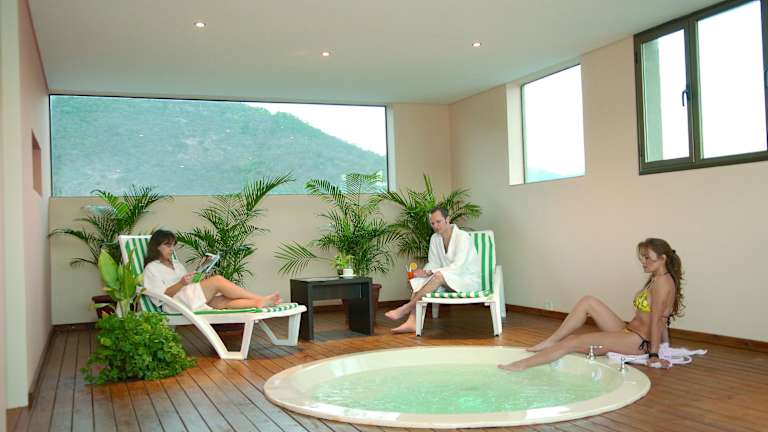 Das Hotel verfügt über einen Whirlpool im Wellnessbereich, in dem die Gäste entspannen können. Eine Sauna und Massageanwendungen sind ebenfalls verfügbar.