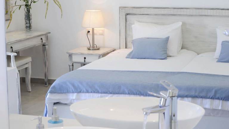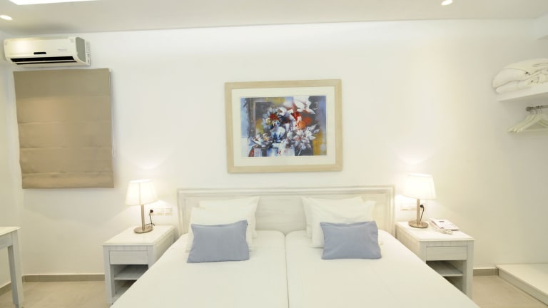 Die Zimmer und Suiten im Hotel Anna sind im traditionellen Stil gestaltet und bieten Ihnen eine gemütliche und komfortable Unterkunft. Die Räume sind mit Fliesenböden, weiß getünchten Wänden und ausgewählten Möbeln eingerichtet. Jede Unterkunft verfügt über einen Balkon, von dem aus Sie einen herrlichen Blick auf die Ägäis genießen können. Zu den weiteren Annehmlichkeiten gehören ein Kühlschrank, ein TV und ein Safe. Das eigene Bad ist mit einer Dusche oder einer Badewanne sowie einem Haartrockner ausgestattet. WLAN steht Ihnen in allen Bereichen des Hotels kostenlos zur Verfügung.