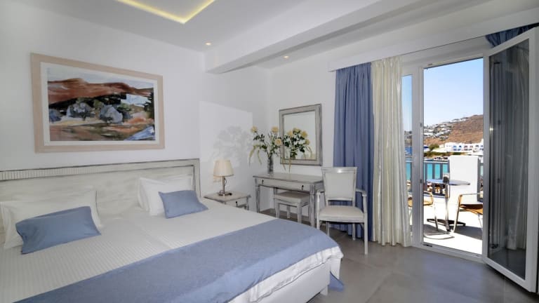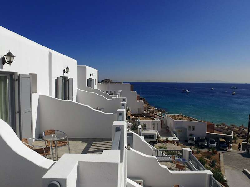 Das Hotel Anna bietet Ihnen eine traditionelle Unterkunft direkt am wunderschönen Sandstrand von Platis Gialos auf Mykonos. Genießen Sie den atemberaubenden Blick auf die Ägäis von Ihrem eigenen Balkon aus. Die klimatisierten Zimmer und Suiten sind komfortabel eingerichtet und verfügen über Annehmlichkeiten wie einen Kühlschrank, einen TV und einen Safe. WLAN steht Ihnen in allen Bereichen kostenlos zur Verfügung. Das Hotel liegt in der Nähe von Restaurants, Bars und dem beliebten Strand Psarrou. Kostenfreie Parkplätze sind ebenfalls vorhanden.