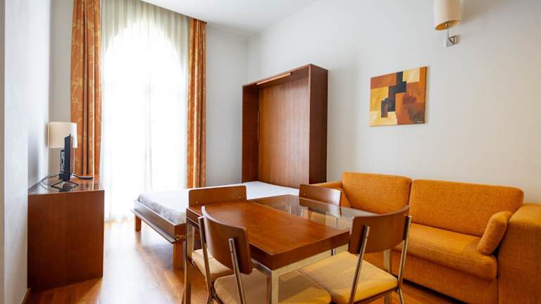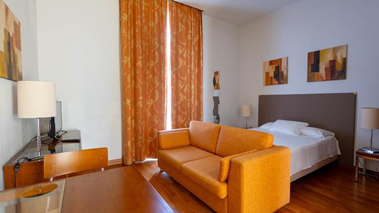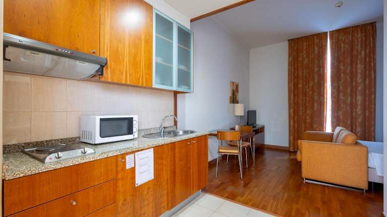 Die Zimmer umfassen Studios und Apartments mit einer voll ausgestatteten Küche, einem Sitzbereich und Klimaanlage.