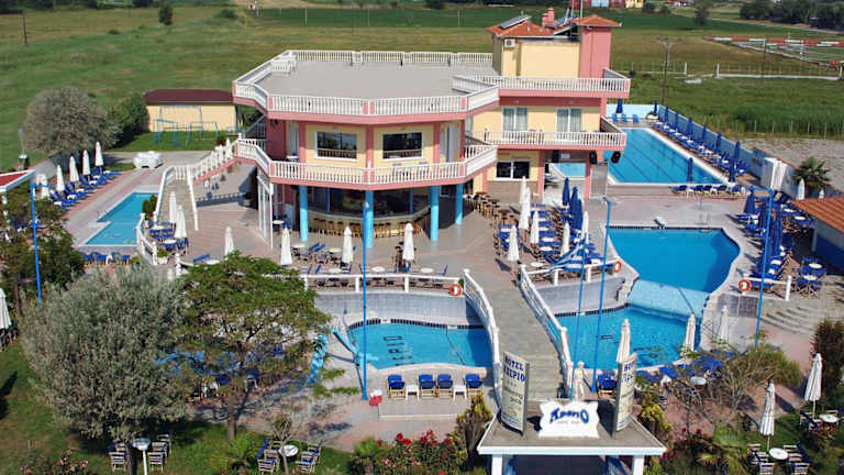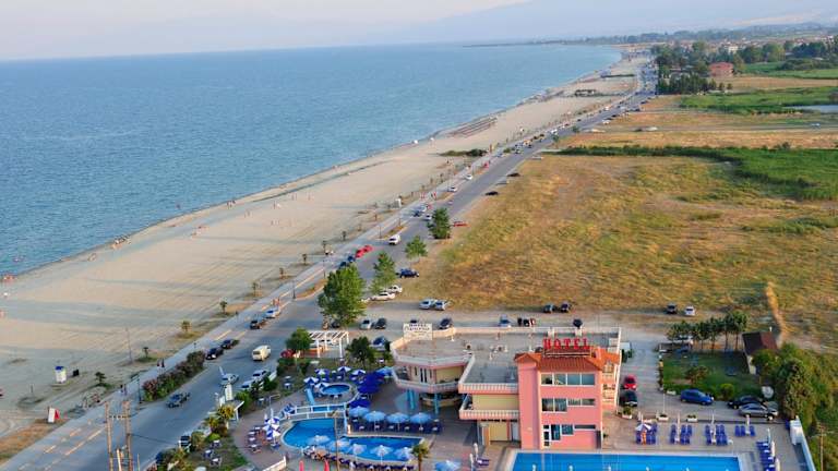 Das Hotel Aperio in Paralia Katerinis bietet Ihnen einen erholsamen Aufenthalt direkt am Strand mit einer Vielzahl von Annehmlichkeiten. Genießen Sie die Außenpools, den Garten und die komfortablen Zimmer mit Balkon. Die zentrale Lage ermöglicht es Ihnen, die umliegenden Cafés und Restaurants zu erkunden. WLAN steht Ihnen kostenfrei zur Verfügung und Sie können auch die Sonnenterrasse und den Garten zum Entspannen nutzen. Das Hotel ist auch der ideale Ausgangspunkt, um den Berg Olymp und die archäologische Stätte von Dion zu besuchen. Die lebhafte Stadt Katerini ist nur wenige Kilometer entfernt und der internationale Flughafen Thessaloniki ist ebenfalls gut erreichbar.