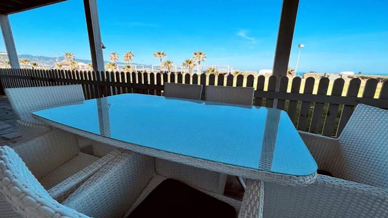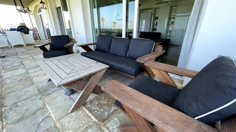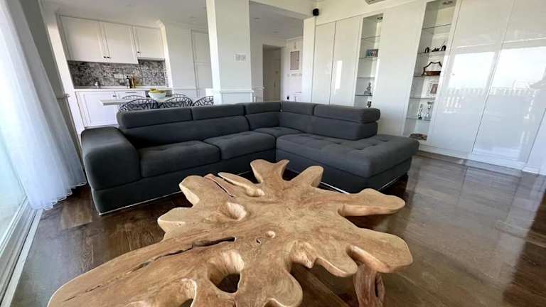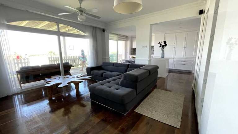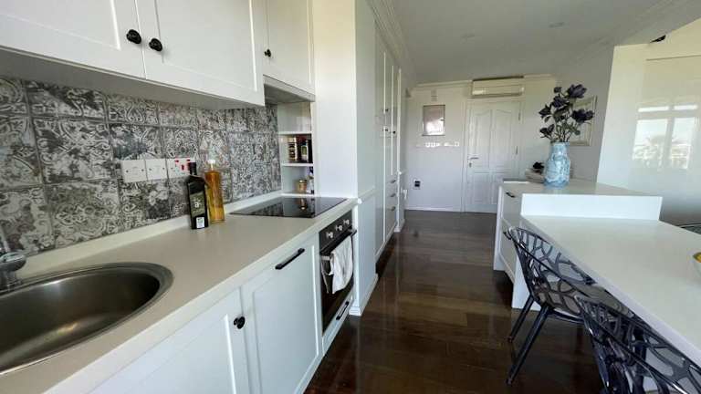 Die Apartments im Aphrodite Beachfront Resort sind geräumig und bieten eine komfortable Unterkunft für Selbstversorger. Jedes Apartment verfügt über eine gut ausgestattete Küche, eine Terrasse und modernes Dekor. Die raumhohen Fenster und die übergroßen Sofas schaffen eine einladende Atmosphäre.