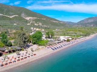 Das Apollon Hotel liegt in der antiken Stadt Epidaurus direkt am Strand. Die Lage ist ideal für einen erholsamen Strandurlaub und bietet gleichzeitig die Möglichkeit, die historischen Stätten der Region zu erkunden. Das antike Theater von Epidaurus ist nur 3 km entfernt und die archäologische Stätte von Epidaurus liegt 5,6 km entfernt. Die Umgebung des Hotels lädt zum Entspannen ein und bietet eine malerische Kulisse mit Blick auf das Meer und den Garten.