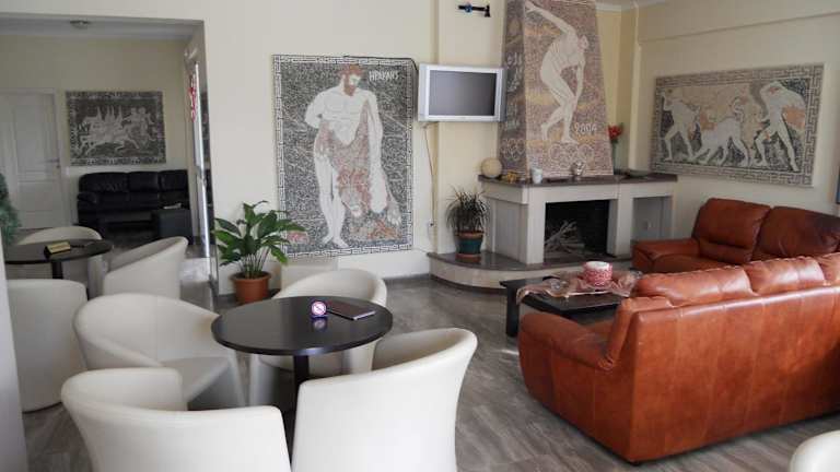 Das Hotel Apollon verfügt über eine Cafébar, in der Sie entspannen und einen Kaffee oder ein Getränk genießen können. In der klimatisierten Lobby können Sie sich am Kamin aufwärmen und die Atmosphäre des Hotels genießen.
