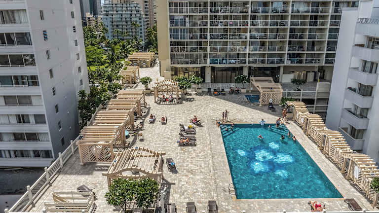 Das Aqua Skyline at Island Colony ist ein modernes Hotel in bester Lage, nur einen kurzen Spaziergang vom Strand von Waikiki entfernt. Die geräumigen Zimmer mit Küchenzeile bieten allen Komfort, den Sie für einen angenehmen Aufenthalt benötigen. Genießen Sie den Außenpool, den Whirlpool und die Sonnenterrasse mit Panoramablick auf die Skyline von Waikiki und den Diamond Head. Das Hotel bietet außerdem Annehmlichkeiten wie eine Autovermietung, ein kleines Lebensmittelgeschäft und einen freundlichen Service.