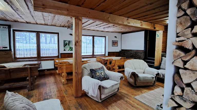 Das Aqualand chata - Športové a výcvikové stredisko ZPS verfügt über mehrere Gemeinschaftsräume für die Gäste, darunter ein geräumiger Wohn- und Essbereich mit einem gemütlichen offenen Kamin. Es gibt auch zwei voll ausgestattete Küchen, in denen die Gäste ihre Mahlzeiten zubereiten können. Kostenfreies WLAN ist in der gesamten Unterkunft verfügbar.