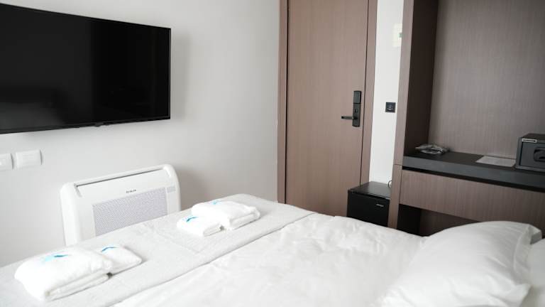Die klimatisierten Zimmer im Hotel Aquila D sind mit einem Schreibtisch, einem Safe, einem Flachbild-TV und einem eigenen Badezimmer mit einem Bidet ausgestattet. Jedes Zimmer ist mit Bettwäsche und Handtüchern versehen. Eine 24-Stunden-Sicherheitsüberwachung und ein Zugang mit Schlüsselkarte sind vorhanden.
