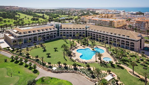 Das Hotel AR Golf Almerimar bietet seinen Gästen eine moderne Unterkunft in der Nähe des Yachthafens von Almerimar. Mit einem 27-Loch-Golfplatz, 2 Außenpools und einem Wellnesscenter ist dieses Hotel ideal für Golf- und Wellnessliebhaber. Genießen Sie die Vielfalt der Restaurants und Bars sowie die Livemusik und das Unterhaltungsprogramm. Der Strand Almerimar ist nur wenige Gehminuten entfernt und die Stadt Almería erreichen Sie mit dem Auto in etwa 40 Minuten.