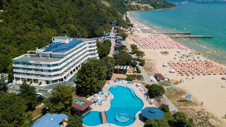 Das Hotel Arabella Beach in Albena bietet einen entspannten Aufenthalt direkt am Strand und umgeben von Natur. Genießen Sie den All-Inclusive-Service und entspannen Sie am großen Außenpool. Das Hotel bietet auch verschiedene Sport- und Freizeitmöglichkeiten sowie Unterhaltungsprogramme für Groß und Klein. Die Zimmer sind komfortabel ausgestattet und verfügen über einen Balkon.