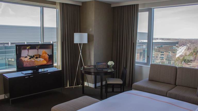 Die Zimmer im Hotel Arista - Naperville sind modern und komfortabel eingerichtet. Jedes Zimmer verfügt über einen 42-Zoll-Flachbild-Kabel-TV und eine iPod-Dockingstation. Das Badezimmer ist elegant gestaltet und bietet eine ebenerdige Dusche, einen Bademantel und einen Spiegel im Spiegel. Kostenloses WLAN ist in allen Zimmern verfügbar.