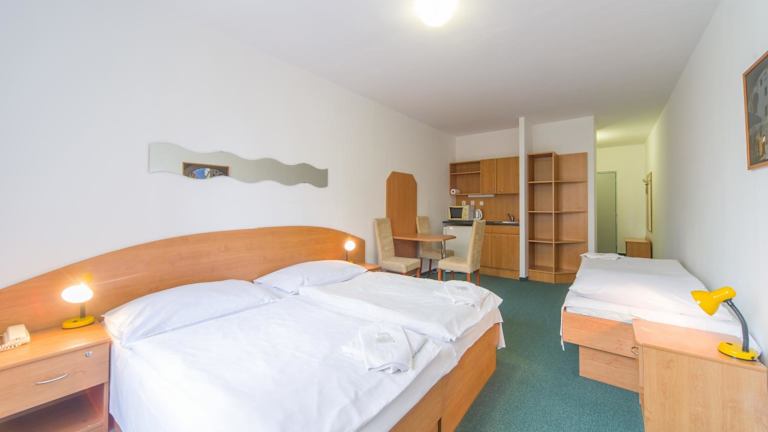 Die Zimmer im Hotel Arnošt Garni sind gemütlich und komfortabel eingerichtet und bieten allen nötigen Komfort für einen angenehmen Aufenthalt. Genießen Sie eine erholsame Nacht in Ihrem eigenen Zimmer und nutzen Sie die Internetverbindung, um mit Familie und Freunden in Kontakt zu bleiben. Zusätzlich steht Ihnen ein Friseur- und Kosmetiksalon zur Verfügung, in dem Sie sich verwöhnen lassen können.