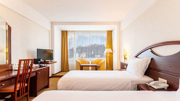 Das Hotel verfügt über 195 Zimmer, 7 Studios, 30 Einzelzimmer und 80 Doppelzimmer, die alle in einem ansprechenden Ambiente eingerichtet sind. Die Zimmer bieten modernen Komfort mit Klimaanlage, Fernseher, Minibar und kostenfreiem WLAN. Für zusätzlichen Komfort stehen auch Familienzimmer zur Verfügung.