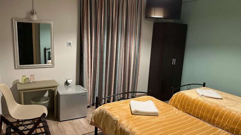 Die Zimmer im Hotel Artemis sind klimatisiert und bieten Ihnen eine angenehme Atmosphäre während Ihres Aufenthalts. Jedes Zimmer verfügt über einen TV, der Ihnen Unterhaltung bietet, sowie einen Minikühlschrank, in dem Sie Ihre Getränke kalt halten können. Das eigene Bad ist mit einer Dusche und kostenfreien Pflegeprodukten ausgestattet. Einige Zimmer verfügen zudem über einen Balkon, auf dem Sie die frische Luft und den Blick auf die Stadt genießen können. Bitte beachten Sie, dass sich die meisten Zimmer in den oberen Etagen befinden und das Hotel keinen Aufzug hat.