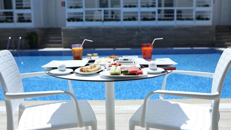 Die Unterkunft verfügt über ein Café sowie eine Poolbar. Es gibt ebenfalls die Möglichkeit, Obst und Wein/Sekt zu bestellen, die jedoch mit zusätzlichen Gebühren verbunden sind.