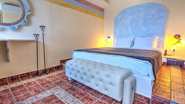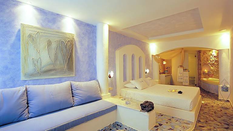 Die 9 Zimmer des Hotels sind über einen Aufzug erreichbar und bieten eine romantische Einrichtung in Naturtönen. Jede Suite verfügt über ein fest eingebautes Bett, Sat-TV, einen CD-Player und eine Minibar. Vom eigenen Balkon oder der Terrasse aus genießen Sie einen atemberaubenden Blick auf den Vulkan. Zur weiteren Ausstattung gehören Bademäntel, Hausschuhe und Pflegeprodukte.