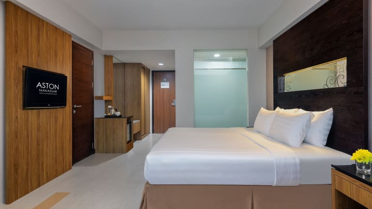 Die modernen Zimmer im Aston Makassar Hotel & Convention Center sind mit dunklen Holzmöbeln und allen Annehmlichkeiten für einen komfortablen Aufenthalt ausgestattet. Ein HD-Flachbild-TV, Kaffee- und Teezubereitungsmöglichkeiten sowie eine Minibar gehören zur Standardausstattung. Im eigenen Badezimmer stehen Ihnen Pflegeprodukte, ein Haartrockner und Bademäntel zur Verfügung.
