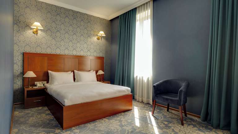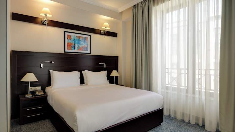 Die klimatisierten Zimmer im Hotel Astoria Tbilisi sind komfortabel und modern eingerichtet. Jedes Zimmer verfügt über einen Balkon, einen Kühlschrank, einen Wasserkocher und einen Flachbild-Sat-TV. Ein Safe, eine Minibar und kostenfreies WLAN stehen ebenfalls zur Verfügung. Im Badezimmer finden Sie eine Dusche oder eine Badewanne sowie Hausschuhe und einen Haartrockner.