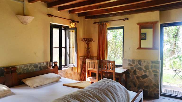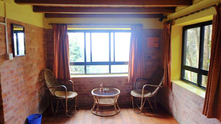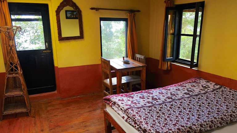Die Zimmer im Hotel At The End Of The Universe sind geräumig und bieten große Fenster, die einen atemberaubenden Blick auf den Himalaya ermöglichen. Die Zimmer sind hell und kühl, mit Holzböden ausgestattet und verfügen über einen Ventilator und ein eigenes Badezimmer. Einige Zimmer bieten zudem einen eigenen Balkon, auf dem Sie die frische Luft und die Aussicht genießen können.