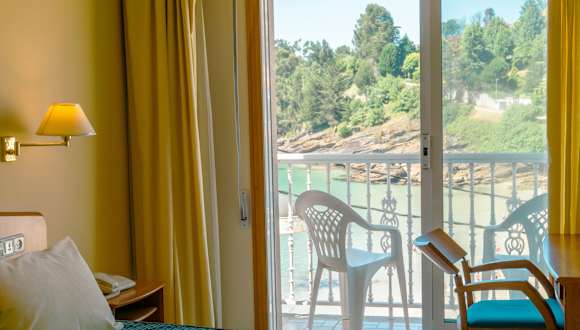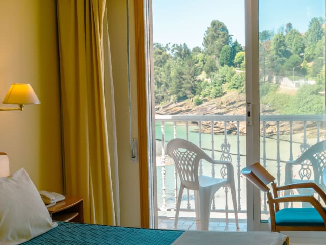 Das Hotel Atalaya II befindet sich in Portonovo, Sanxenxo, und liegt direkt am Rande des Caneliñas Strandes. Von hier aus haben Sie einen herrlichen Blick auf die Pontevedra Ria. Die Lage des Hotels ist ideal für einen Strandurlaub und bietet zudem die Möglichkeit, die schöne Umgebung zu erkunden. Das Zentrum von Sanxenxo ist nur eine kurze Fahrt entfernt und die Stadt O Grove erreichen Sie nach etwa 15 km. In der Nähe des Hotels stehen Ihnen Parkplätze zur Verfügung.