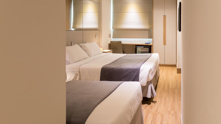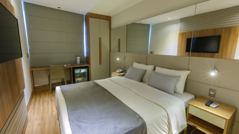 Die 150 klimatisierten Zimmer im Hotel Atlântico Travel sind komfortabel eingerichtet und verfügen über Annehmlichkeiten wie eine Minibar und einen Flachbildfernseher. Kostenloses WLAN steht zur Verfügung und die Badezimmer sind mit Duschen, kostenlosen Toilettenartikeln und Haartrocknern ausgestattet. Telefon, Safe und Schreibtisch sind ebenfalls vorhanden.