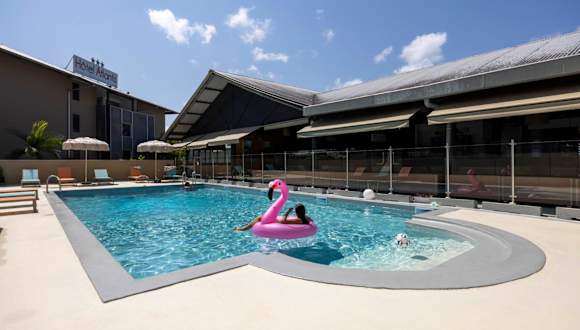 Das Hotel Atlantis in Kourou ist die ideale Unterkunft für einen entspannten Aufenthalt, nur 1,8 km vom Strand entfernt. Freuen Sie sich auf einen Außenpool, einen Tennisplatz und kostenfreies WLAN. Jedes Zimmer ist mit modernen Annehmlichkeiten wie einem TV, Klimaanlage und einer Minibar ausgestattet. Das Hotel bietet auch ein Fitnesscenter, kostenlose Parkplätze und eine Gemeinschaftslounge. Entdecken Sie die zahlreichen Aktivitäten wie Golfen und Wandern in der Umgebung. Das Stadtzentrum ist nur 3 km entfernt und der internationale Flughafen Cayenne - Félix Eboué liegt 67 km entfernt.