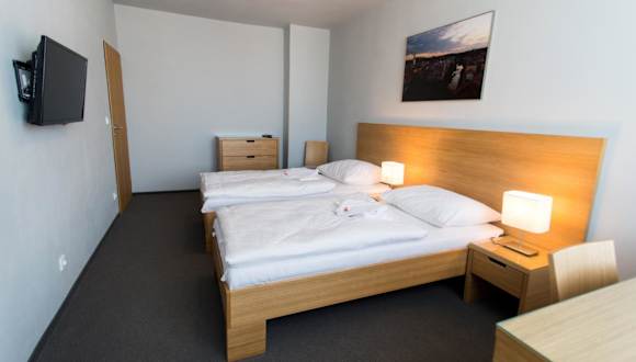 Das Hotel Atom Třebíč bietet seinen Gästen eine komfortable Unterkunft mit einem eigenen Restaurant, kostenfreiem WLAN und einer 24-Stunden-Rezeption. Die Zimmer sind gut ausgestattet und verfügen über einen Balkon, einen TV und einen Kühlschrank. Die Lage des Hotels ist ideal, da eine Bushaltestelle direkt vor dem Hotel liegt und der Bahnhof nur 1,7 km entfernt ist. Sehenswürdigkeiten wie das jüdische Viertel und die St. Procopius-Basilika sind zu Fuß erreichbar. Außerdem ist der Aquapark Laguna nur 5 Gehminuten entfernt. Für Gäste, die mit dem Auto anreisen, stehen Privatparkplätze in der Garage zur Verfügung.