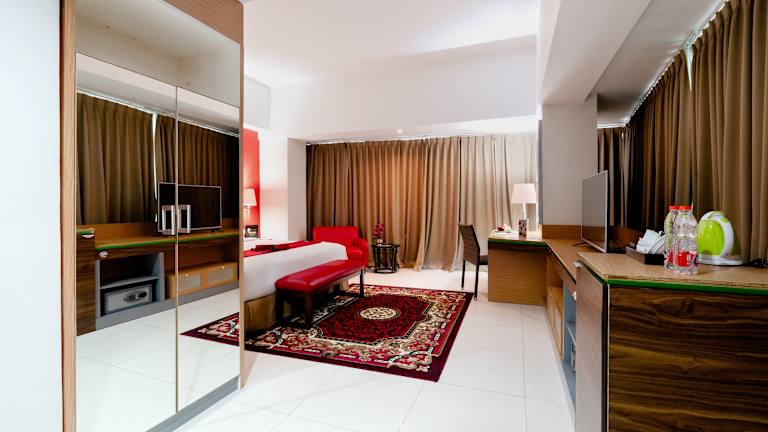 Die Zimmer im Atrium Premiere Hotel Yogyakarta Ambarukmo sind modern eingerichtet und bieten allen Komfort, den Sie für einen angenehmen Aufenthalt benötigen. Jedes Zimmer verfügt über eine Klimaanlage, einen Flachbild-Sat-TV und ein eigenes Badezimmer mit Dusche und kostenlosen Pflegeprodukten. Einige Zimmer bieten zudem einen schönen Blick auf die Stadt.