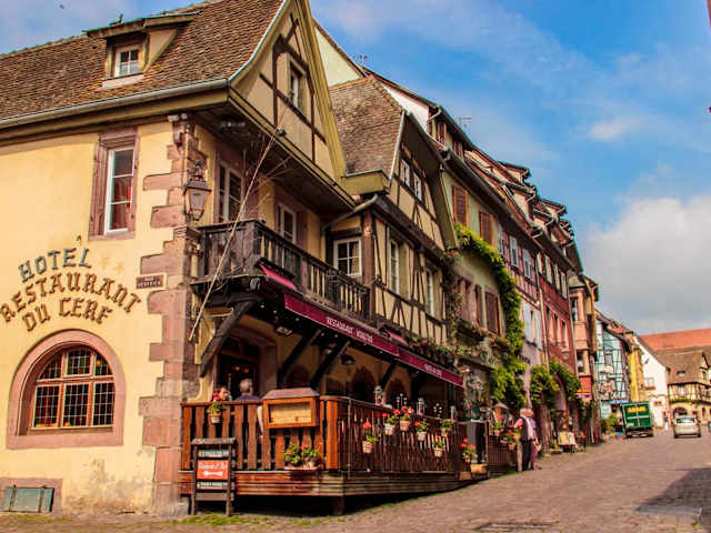 Das Hotel Au Cerf liegt in Riquewihr, nur 11 km von der Colmar Expo entfernt. Die Stiftskirche Saint-Martin und der Bahnhof Colmar befinden sich etwa 14 km entfernt. Die Lage des Hotels ermöglicht es den Gästen, Aktivitäten wie Wandern, Skifahren und Radfahren in und um Riquewihr zu genießen. Das Schloss Le Haut Koenigsbourg und das Würth-Museum sind ebenfalls leicht zu erreichen. Der internationale Flughafen Straßburg ist etwa 59 km entfernt.