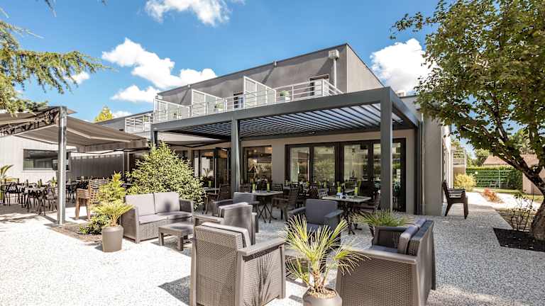 Das Au Comté d'Ornon Hotel in Gradignan bietet seinen Gästen eine ideale Lage, um die Stadt Bordeaux zu erkunden. Die klimatisierten Zimmer sind modern eingerichtet und verfügen über kostenfreies WLAN und einen Flachbild-TV. Das Hotelrestaurant serviert kreative regionale Küche und bietet eine Gartenterrasse. Ein Frühstücksbuffet wird auf der Terrasse oder im Frühstücksraum angeboten. Das Hotel verfügt über eine Ladestation für Elektroautos und ist von Montag bis Samstag geöffnet.