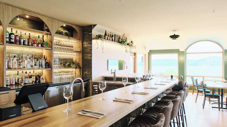 Das Restaurant O'Batillage im Hotel Auberge des Battures bietet gehobene französische Küche mit regionalen Produkten. Der Speisesaal ist mit einem großen Kamin ausgestattet und bietet einen atemberaubenden Panoramablick auf den Saguenay-Fjord. Hier können Sie kulinarische Köstlichkeiten in einer gemütlichen Atmosphäre genießen.
