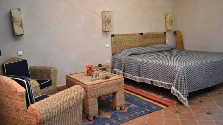 Die klimatisierten Zimmer des Domaine de Tameslohte sind geschmackvoll eingerichtet und bieten ein traditionelles marokkanisches Dekor. Jedes Zimmer verfügt über ein eigenes Bad und bietet den Gästen einen komfortablen Rückzugsort nach einem ereignisreichen Tag.