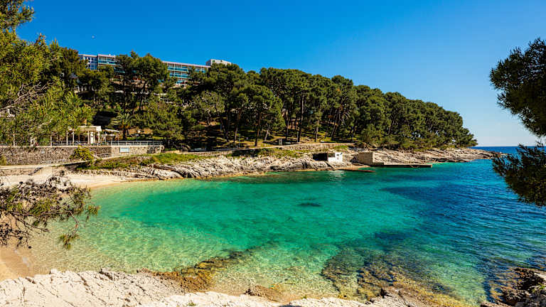 Wellnesshotel Aurora in Mali Lošinj, Kroatien befindet sich in der wunderschönen Sonnenbucht, umgeben vom kristallklaren Meer und vom hundertjährigen Kiefernwald. Das Hotel liegt nur 50 Meter vom Meer, gleich bei den Sportanlagen und 20 Minuten vom Stadtzentrum entfernt.