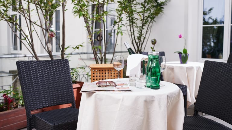 Wann immer Sie Lust haben, entspannen Sie sich auf unserer ruhig gelegenen Terrasse bei einer Tasse Kaffee oder einem Glas Wein oder schmökern Sie in unserer Bibliothek in unseren Aufenthaltsräumen im Biedermeierstil. Hier stehen Ihnen auch ein gratis Highspeed-Internetterminal, ein gratis Wireless LAN hotspot und 5-sprachiges Kabel-TV zur Verfügung.