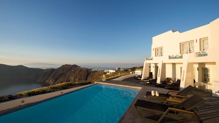 Das Avaton Resort and Spa liegt auf einer Klippe am Rande von Imerovigli und bietet somit eine herrliche Aussicht auf das Meer, den Sonnenuntergang, die Kaldera, das Dorf Oia und die Insel Thirassia. Die ruhige Lage sorgt für Entspannung, während die gute Verkehrsanbindung es Ihnen ermöglicht, die nahegelegene Stadt Fira in nur 2 km Entfernung zu besuchen. Imerovigli selbst ist nur 100 m entfernt und bietet Mini-Märkte, Restaurants und Geschäfte. Die Bushaltestelle ist ebenfalls nur 200 m entfernt.