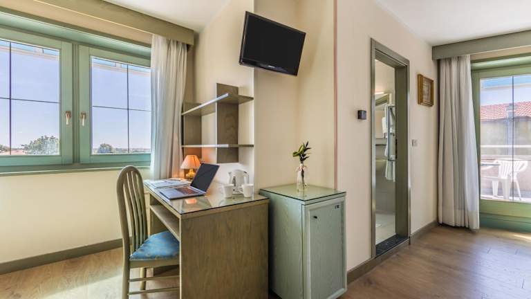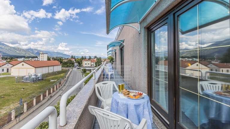 Im Aviano Palace Hotel erwarten Sie komfortable Zimmer mit Klimaanlage und Sat-TV. Viele der Zimmer bieten zudem einen herrlichen Blick auf die umliegenden Berge. Jedes Zimmer verfügt über ein eigenes Badezimmer und bietet eine angenehme Atmosphäre für einen erholsamen Aufenthalt.
