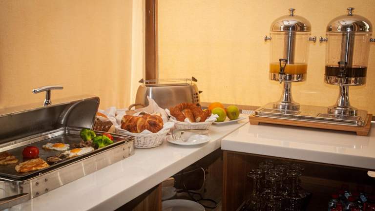Das Hotel verfügt über mehrere gastronomische Einrichtungen, einschließlich eines Restaurants, eines Cafés und einer Bar. Die Verpflegungsoptionen umfassen Halbpension, mit einem reichhaltigen Frühstücksbuffet sowie à la carte Optionen zum Mittag- und Abendessen.
