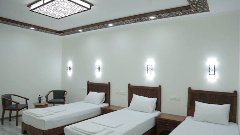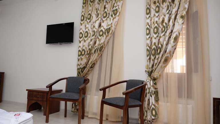 Das AYUB Boutique Hotel in Buxoro bietet seinen Gästen eine komfortable Unterkunft mit zahlreichen Annehmlichkeiten. Das Hotel verfügt über ein Restaurant, eine Bar, eine Gemeinschaftslounge und eine Terrasse, auf der man entspannen kann. Das freundliche und hilfsbereite Personal steht Ihnen rund um die Uhr zur Verfügung. Die Zimmer sind modern und klimatisiert, und kostenfreies WLAN ist in der gesamten Unterkunft verfügbar. Für zusätzlichen Komfort gibt es einen Zimmerservice und einen Geldwechsel. Das Hotel bietet auch kostenlose Privatparkplätze und ein Businesscenter.