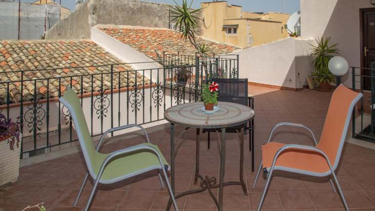Die Terrasse der Residence Acropoli lädt zum Entspannen und Genießen des schönen Wetters ein.