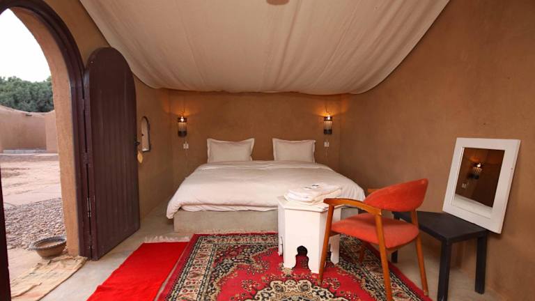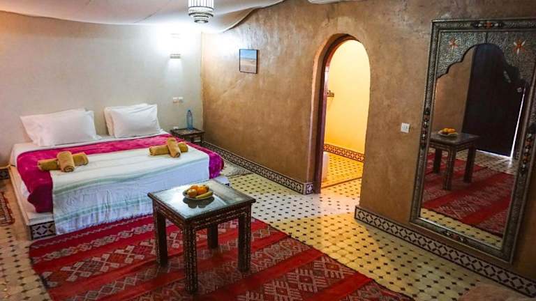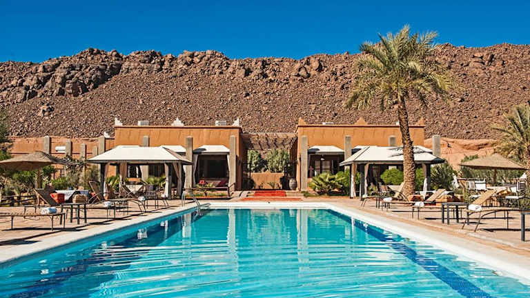 Das Hotel Bab Rimal liegt in der Stadt Foum Zguid in der Provinz Tata. Die Umgebung ist von einem malerischen Palmenhain umgeben und bietet eine idyllische Kulisse für einen erholsamen Aufenthalt. In der Nähe befinden sich zahlreiche Wander- und Trekkingmöglichkeiten, die es Ihnen ermöglichen, die Schönheit der umliegenden Berge und Landschaften zu erkunden.