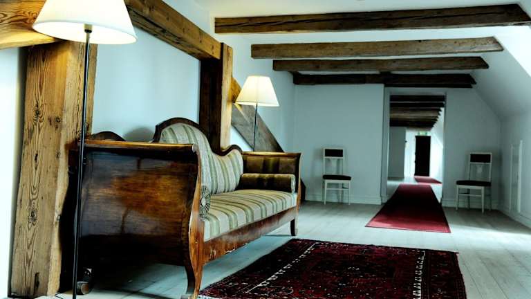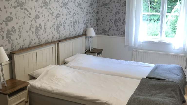 Die Zimmer im Bäckaskog Slott Hotel sind gemütlich eingerichtet und bieten entweder ein eigenes oder ein Gemeinschaftsbad. Die meisten Zimmer verfügen über Holzbalken und bieten einen malerischen Blick auf den See oder den Park. Die rustikale Atmosphäre sorgt für eine gemütliche und einladende Atmosphäre.