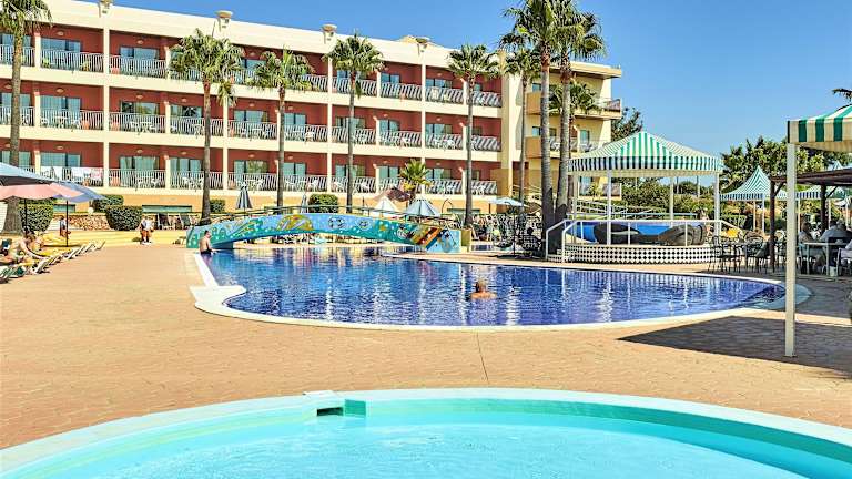 In der Küstenstadt Albufeira erwartet Sie dieses 4-Sterne-Hotel mit Blick auf den Atlantik, nur 800 m vom Strand entfernt und bietet einen Außenpool und Zimmer mit Balkon Die in neutralen Farben gehaltenen Zimmer im Hotel Baia Grande verfügen über Klimaanlage sowie einen Flachbild-TV mit Sat-Empfang und einer Minibar. Einige Zimmer bieten Panoramablick auf das Meer. Ihren Morgen beginnen Sie mit einem Frühstück vom Buffet auf der Sonnenterrasse bei Blick auf den Pool. Ein Restaurant und eine Pianobar laden im Hotel Baia zu einem Besuch ein und im Sommer wird in der Nähe des Pools gegrillt und folkloristische Musik gespielt. Im Spielezimmer des Hotels Grande können Sie Billard spielen und auch ein Innenpool mit Whirlpool verspricht erholsame Momente. Am Tourenschalter können Sie Fahrräder mieten und sich über die örtlichen Attraktionen informieren. Das Hotel Baia Grande liegt 35 Autominuten vom internationalen Flughafen Faro entfernt sowie 3 km vom Stadtzentrum. Mit dem Shuttlebus gelangen Sie nach Albufeira und zu den Stränden.