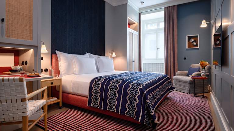 Das Bairro Alto Hotel verfügt über 87 Zimmer, darunter einzigartige Suiten, Suiten und Junior Suiten. Die Zimmer bieten entweder einen Blick auf den Fluss Tejo oder auf die Viertel Chiado und Bairro Alto. Die Zimmer sind geschmackvoll eingerichtet und verfügen über modernen Komfort wie Klimaanlage und kostenfreies WLAN.