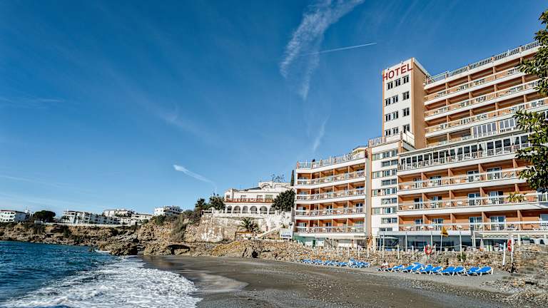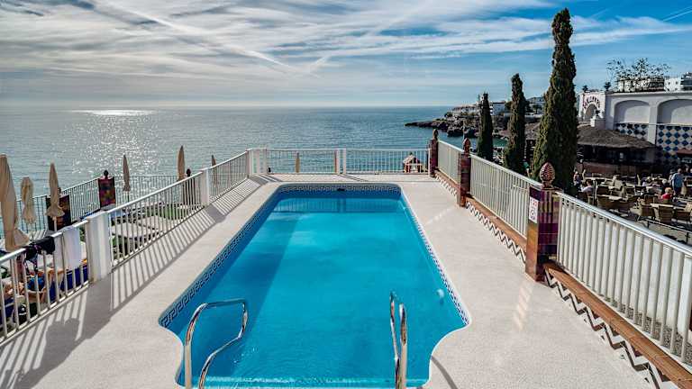 Das Hotel Balcón de Europa befindet sich in zentraler Lage in Nerja und bietet einen atemberaubenden Panoramablick auf das Meer. Die Altstadt von Nerja mit ihren charmanten Gassen, Geschäften und Restaurants liegt nur wenige Schritte entfernt. Der Flughafen Málaga ist etwa 60 km entfernt.