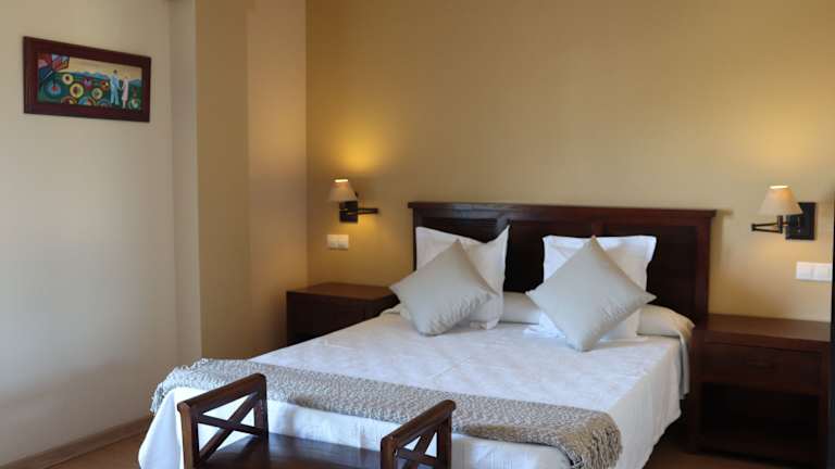 Die Zimmer im Hotel Balcón de San Bartolo sind komfortabel und modern eingerichtet. Jedes Zimmer verfügt über ein eigenes Badezimmer mit einer geräumigen Dusche. Das attraktive Design und die Steinwände verleihen den Zimmern eine besondere Atmosphäre.