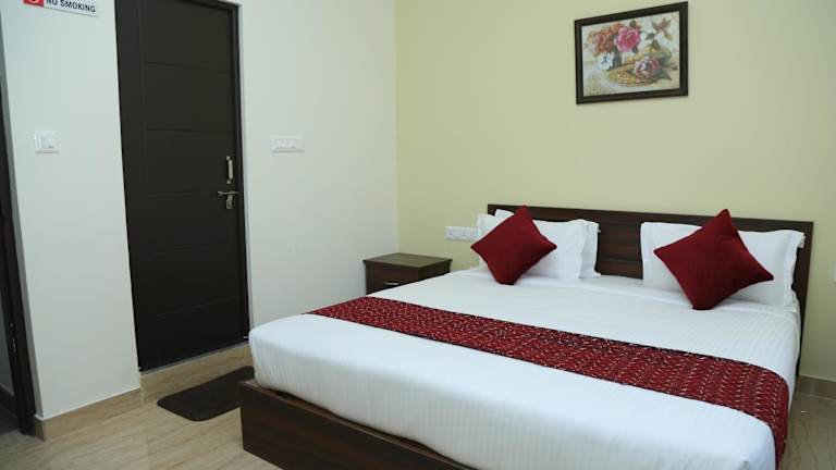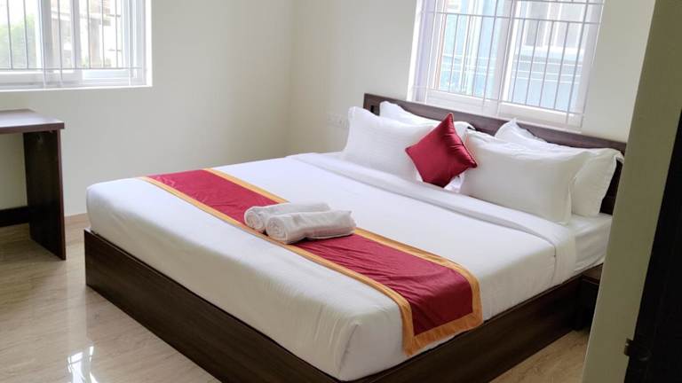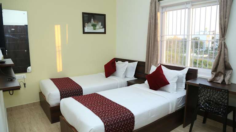 Die Zimmer im Hotel Bangalore Airport Inn sind modern und komfortabel eingerichtet. Sie verfügen über Annehmlichkeiten wie einen Schreibtisch, einen Flachbild-TV, ein eigenes Bad, bequeme Betten und hochwertige Bettwäsche sowie Handtücher. Jedes Zimmer ist zudem mit einem Kleiderschrank und einem Wasserkocher ausgestattet.