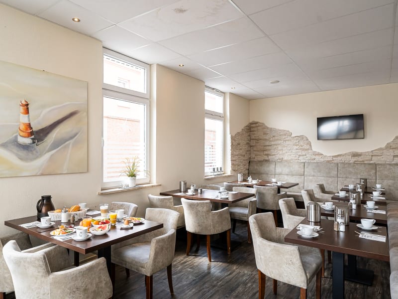 In gepflegtem Ambiente bieten wir Ihnen vom kleinen Standard-Zimmer für Kurzübernachtungen bis zum geräumigen Komfort-Zimmer alles was Sie für einen gelungenen Aufenthalt in Wilhelmshaven benötigen! Unsere Zimmer sind zum größten Teil frisch renoviert - verfügen über einen kostenlosen W-LAN Zugang - sind alle ausgestattet mit Dusche, WC und TV. Weiterhin verfügt unser Haus über kostenlose Parkplätze, ein griechisches Restaurant mit Biergarten und Gaststube / Hotelbar und vieles mehr. Direkt am Haus finden Sie eine Bushaltestelle, von wo aus Sie alles in Wilhelmshaven schnell und bequem erreichen. Auch zu Fuß sind Sie in 10-15 Gehminuten direkt in der Fußgängerzone, oder in ca. 20-30 Gehminuten am Hafen.