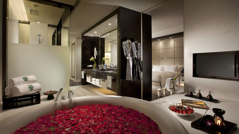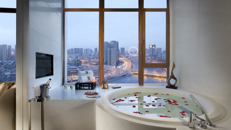 Das Hotel Banyan Tree Tianjin Riverside befindet sich in Tianjin und ist ca. 18,9 km vom Flughafen entfernt. Die Lage des Hotels bietet einen atemberaubenden Blick auf das Umland und ist der perfekte Ausgangspunkt, um die Stadt zu erkunden. Der Bahnhof ist ca. 3,9 km entfernt und das Stadtzentrum ist nur einen Kilometer entfernt.