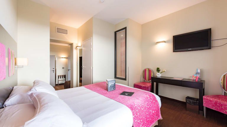 Das Hotel Baptistin in Le Lavandou ist der ideale Ort für einen entspannten Aufenthalt in einem provenzalischen Fischerort. Die modernen Zimmer bieten Annehmlichkeiten wie kostenfreies WLAN, Flachbild-Sat-TV und Klimaanlage. Einige Zimmer verfügen über Meerblick und eine eigene Terrasse. Genießen Sie das kontinentale Frühstück auf der Terrasse mit Meerblick und entspannen Sie bei einem Aperitif in der Bar. Das Hotel liegt in der Nähe von Stränden, Bars, Restaurants und dem Fährhafen mit Verbindungen zu den Goldenen Inseln.