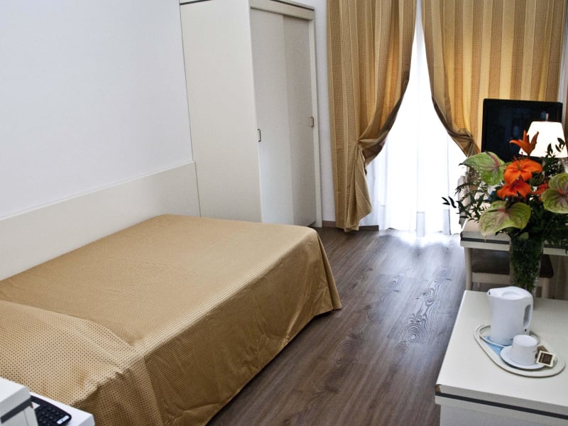 Die ZIMMER sind sehr ruhig da sie im Hintergrund liegen. Sie haben geschmackvolle Einrichtung und sind mit ein kleiner Balkon ausgestattet. ALLE Zimmer haben Klimaanlage, TV, TV-Sat, Telefonapparat, Wi-Fi Verbindung, Minibar, Wasserkocher, Kissenkarte und Bad mit Dusche, Fön und alle Toilettenartikeln. Innere Parkplatz mit Garage frei zu Ihrer Verfügung. Sehr reich und geschätzt ist unsere BUFFETFRUEHSTUECK .