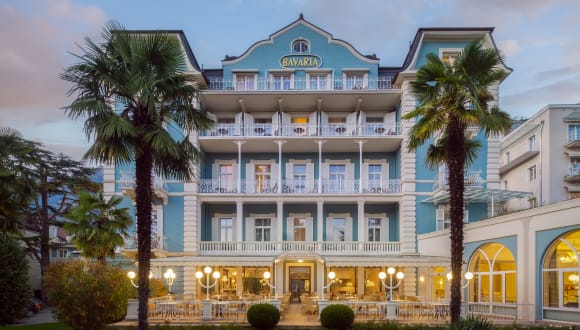 Das Hotel Bavaria stammt aus der Belle Époque, der Glanzzeit Merans und bietet Ihnen auch heute noch das Gefühl herrschaftlichen Wohnens. Hier erwartet Sie stilvolle Eleganz in ungezwungener und freundlicher Wohlfühlatmosphäre. Zwei Löwen am Eingang erinnern an Herzog Karl Theodor von Bayern, der damals jahrelang in der Villa Bavaria wohnte und Meran genauso schätzte wie seine Schwester Kaiserin Sissi. Das Bavaria verfügt über eine neu renovierte Hotellobby mit Hausbar, einen stilvollen und klimatisierten Speisesaal im Jugendstil mit Blick in den Park sowie eine kleine Hausbibliothek mit Tageszeitungen und Wochenmagazinen und einem Internetpoint. Die herrliche und großzügige Sonnenterrasse zum Park bildet das Herzstück: beim Frühstück, beim Mittagessen, nachmittags bei Kaffee und Kuchen oder Eisspezialitäten und ganz besonders zum Abschluß des Tages in den lauen Abendstunden.